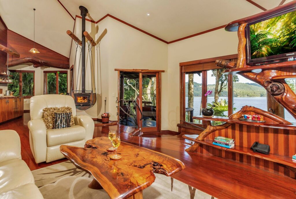 World class treehouses nestled high in the rainforest, with stunning views over Lake Baroon. Relax with a glass of Champagne in your double spa in front of your log fire, lunch in Secrets Cafe. You will never want to leave!