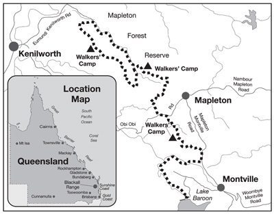 Wear adequate clothing, a cap and sturdy footwear to suit all weather conditions. To ensure your Great Walk is trouble free and enjoyable, your Montville Getaways hosts can provide you with a day pack containing a thermos flask, drinking water, tea, coffee, sugar, milk, insect repellant, suntan lotion, mini first aid kit, a laminated map and information for your chosen day walk. Picnic hamper packs are also available on request. Please ask your hosts for costs of the daily pack hire. A topographic map can be purchased when making your booking in order to plan your walks before arrival.